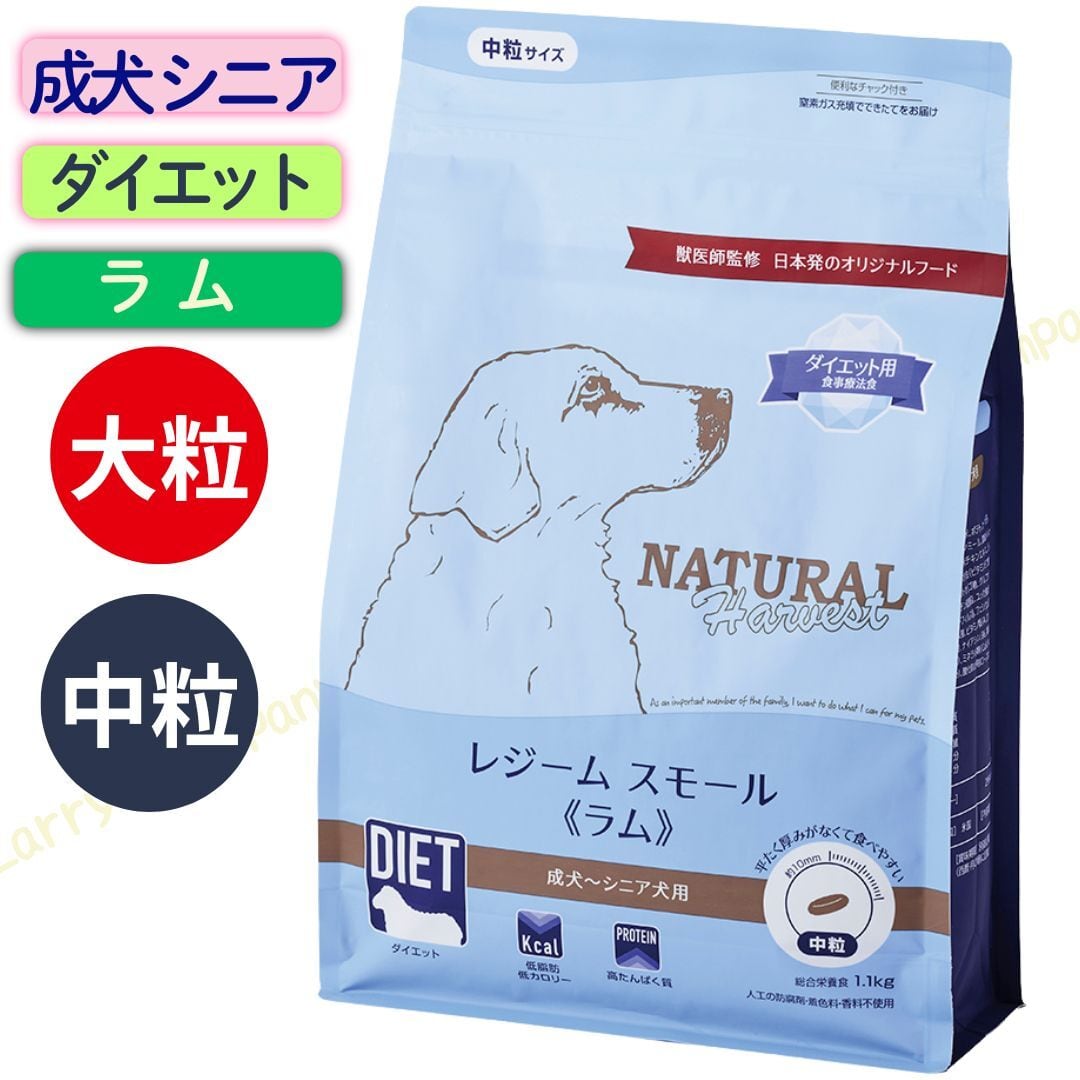メンテナンス ラム小粒 50gx10袋 おまけはラリカンのホームメイドクッキー ◇AAFCO成犬用栄養基準適合総合栄養食 【大粒】 BHA・BHT・エトキシキン等の人工保存料や人工香料・人工着色料は一切使用しておりません。 ◇ダイエット用食事療法食 ◇成犬用 シニア犬用 日本の住環境で暮らす成犬・シニア犬に。愛犬に自信をもって与えられる食事をとの想いで作った特別なフードです。日本の犬の多くが避妊や去勢をすること、海外と比べて運動が不足し、肥満になりがちであることに着目。またアレルギーが増えていることにも着目して原材料を出来る限りシンプルに、選びやすい食事を目的に開発しました。 ■ラム肉 燃焼系アミノ酸L-カルニチンが豊富なラム。生のラム肉と低脂肪な乾燥ラム肉を組み合わせました。 ■シンプル おなかのデリケートな子やアレルギーのある子にも安心の原材料をしぼり込んだシンプルな配合です。 ■低脂肪・低カロリー 脂肪分とカロリーを控えてヘルシーに。 カロリー315kcal/100g ■原材料を厳選 限られた原材料を使用するからこそ、高品質な原材料を厳選しました。 ■低アレルギー たんぱく質源をラム肉とえんどう豆に限定。消化率が高い食材を組み合わせることで食物アレルギーにも配慮しています。 ■高消化 消化に配慮して丁寧に精製した白米を使用しました。 ■関節ケア グルコサミン・コンドロイチンを配合し、関節のトラブルや加齢による負担をサポート。 ■免疫ケア γリノレン酸豊富な月見草油で健康な免疫力を維持します。 ■瞳ケア ポリフェノール豊富なブルーベリーで輝く瞳をケア。 ■被毛ケア オメガ3脂肪酸豊富な亜麻仁と酵母で艶やかな被毛に。 ■腸内ケア 4種の善玉菌で健康な腸内フローラをサポート。 ■おしっこサポート 泌尿器の健康を維持するクランベリーで健康的なおしっこをお手伝い。 ■元気サポート タウリンで元気な毎日をサポート。 ◇原産国:米国 ◇内容量:1.1kg(1袋) ◇原材料(原材料原産国):ラム(ニュージーランド)、ラムミール(ニュージーランド)、精製白米(米国)、えんどう豆繊維(米国)、米ぬか(米国)、鶏脂肪(ビタミンEで酸化対策済)(米国)、亜麻仁(米国)、えんどう豆たんぱく質(米国)、酵母(米国)、酵素分解チキンエキス(米国)、塩化カリウム(カナダ、米国)、海塩(米国)、塩化コリン(イギリス)、クランベリー(米国)、ブルーベリー(米国)、タウリン(日本)、月見草油(低温圧搾)(米国)、キレート亜鉛(米国)、キレート鉄(米国)、グルコサミン塩酸塩(インド)、コンドロイチン硫酸塩(米国)、ビタミンE(スイス)、キレート銅(メキシコ)、キレートマンガン(メキシコ)、ナイアシン(米国、インド)、セレン酸ナトリウム(米国)、パントテン酸カルシウム(スコットランド)、リボフラビン(ドイツ、韓国)、ビタミンA(スイス)、ビオチン(米国、フランス)、硝酸チアミン(ドイツ)、ビタミンD3(フランス)、塩酸ピリドキシン(ドイツ)、ビタミンB12(フランス)、ヨウ化カルシウム(カナダ、米国)、葉酸(フランス)、アシドフィルス菌(米国)、フェシウム菌(米国)、カゼイ菌(米国)、プランタルム菌(米国)、酸化防止剤(ローズマリー抽出物)(米国) ◇原材料[簡易表記]:ラム、ラムミール、精製白米、えんどう豆繊維、米ぬか、鶏脂肪(ビタミンEで酸化対策済)、亜麻仁、えんどう豆たんぱく質、酵母、酵素分解チキンエキス、クランベリー、ブルーベリー、タウリン、月見草油(低温圧搾)、グルコサミン塩酸塩、コンドロイチン硫酸塩、アシドフィルス菌、フェシウム菌、カゼイ菌、プランタルム菌、ビタミン類(A、D3、E、B1、B2、パントテン酸、ナイアシン、B6、葉酸、ビオチン、B12、コリン)、ミネラル類(Ca、K、Na、Cl、Fe、Cu、Mn、Zn、I、Se)、酸化防止剤(ローズマリー抽出物) ◇成分:たんぱく質18.0%以上 脂質8.0%以上 粗繊維4.0%以下 灰分7.5%以下 水分10.0%以下 ◇カロリー:315kcal/100g ◇実測値:オメガ6:オメガ3=1.1%:0.4%
