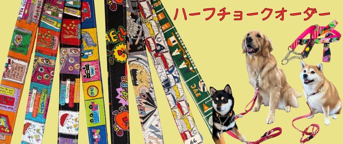 ポップブラックの升目柄。 ハーフチョークとリードのセットです。 裏のテープの色が選べる 選べるショートハンドルの有無 ワンちゃんの首のサイズに合わせて作ります。 完全なオーダーメイドのハーフチョークカラーとリードのセットです。 オシャレで機能的、しつけも出来るハーフチェックカラーとリードのセット 交通の激しい所、混雑している人混み、ワンちゃんの多いいところで愛犬を近く に寄せて置ける、短いハンドルのついた便利なリードはおすすめです。(+1,100円) 【サイズ】L 体重目安:28~35kg 手作りの為、多少誤差があります事をご了承下さい。 首輪:幅2.5cm 首周りをご記入してください。 前後は調節できます リード:約120cm 持ち手のフックは取り外しが出来き便利です。 トラフィックハンドル(ナスカンの先端からハンドルの先まで):約28cm 日本製 ラリーズカンパニーのハンドメイド 【Made in Hamanako】 ご注文の際にはワンちゃんの 首周り 裏のテープの色を選んで下さい。 ショートハンドルの有無を選んで下さい。 生産者様の声 ◆ハーフチョークカラーとは・・・◆ 首周りの毛切れを防ぎ、ワンちゃんの気管支を痛めない、そして首輪抜けの心配もない安心のカラーです。 訓練にも向いていますので、やんちゃなワンちゃんにも最適! どなたでも安心して使える優れものです。 首輪の布部分を、首周りと同じ長さに調節してお使いください。 必要な時だけ首輪が締まりますが、首と同じサイズまでしか閉まりませんのでワンちゃんに負担がかかりません。 飼い主さんの細かい手の動きがワンちゃんに伝わりやすくしつけ途中のワンちゃんに、日頃の訓練としてもお使い頂けます。 お年寄りのワンちゃん、特にゴールデンレトリバーなど、首の皮がたるみやすい犬種には特にお勧めです。 普段はゆったりしていますが、その時は抜ける心配はまずありません。 寝ている時間の長いワンちゃんには睡眠の負担になる事がないと思います。 また、万が一の時にもさっと着装出来ます。 首輪の嫌いなワンちゃんにも向いています。 初めの1回だけ調節を頑張ってしておけば、その後はそのまま、ささっと頭を通すだけです。