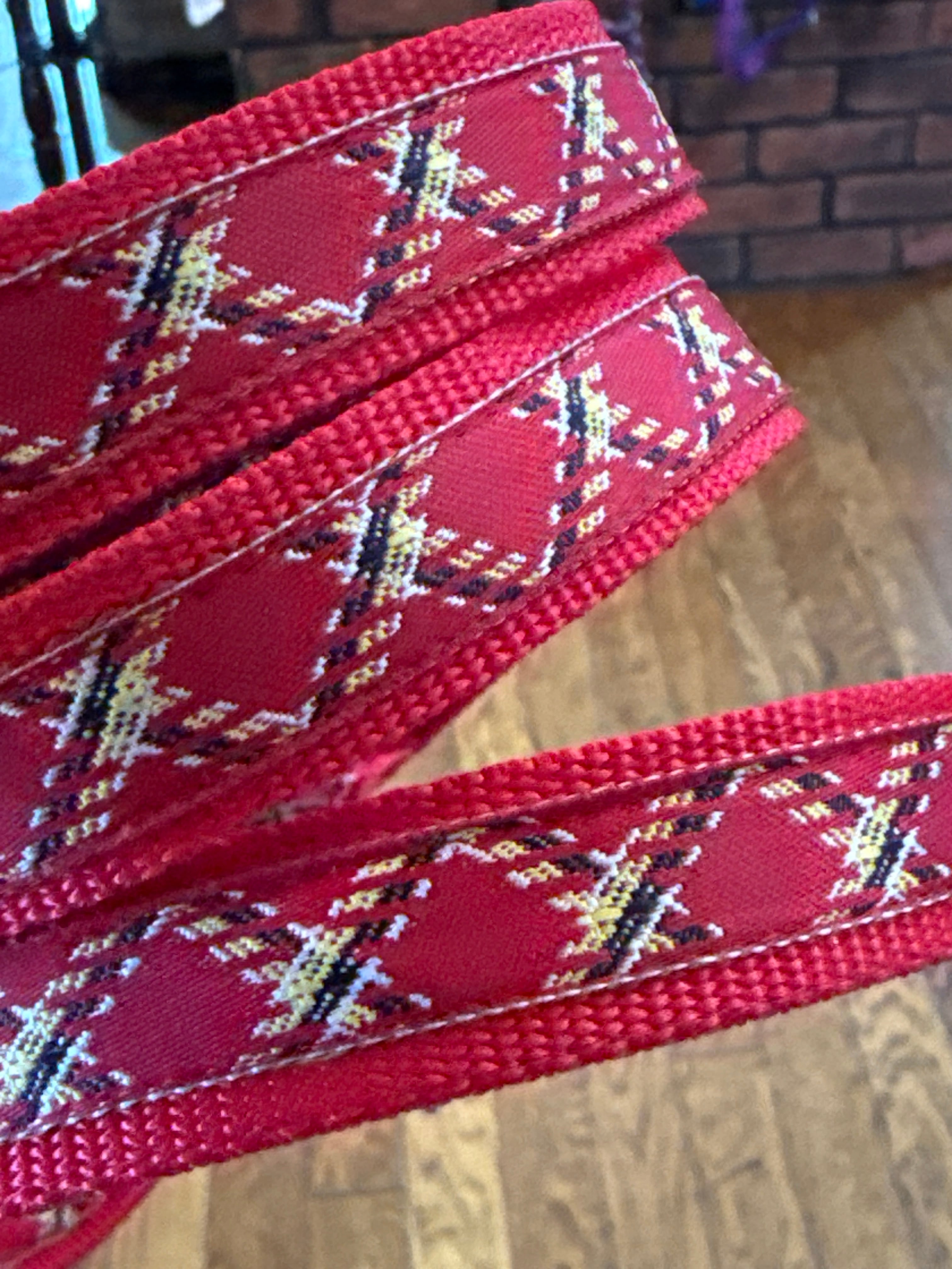 海外で見つけたジャガードテープと日本製のナイロンテープで作りました。