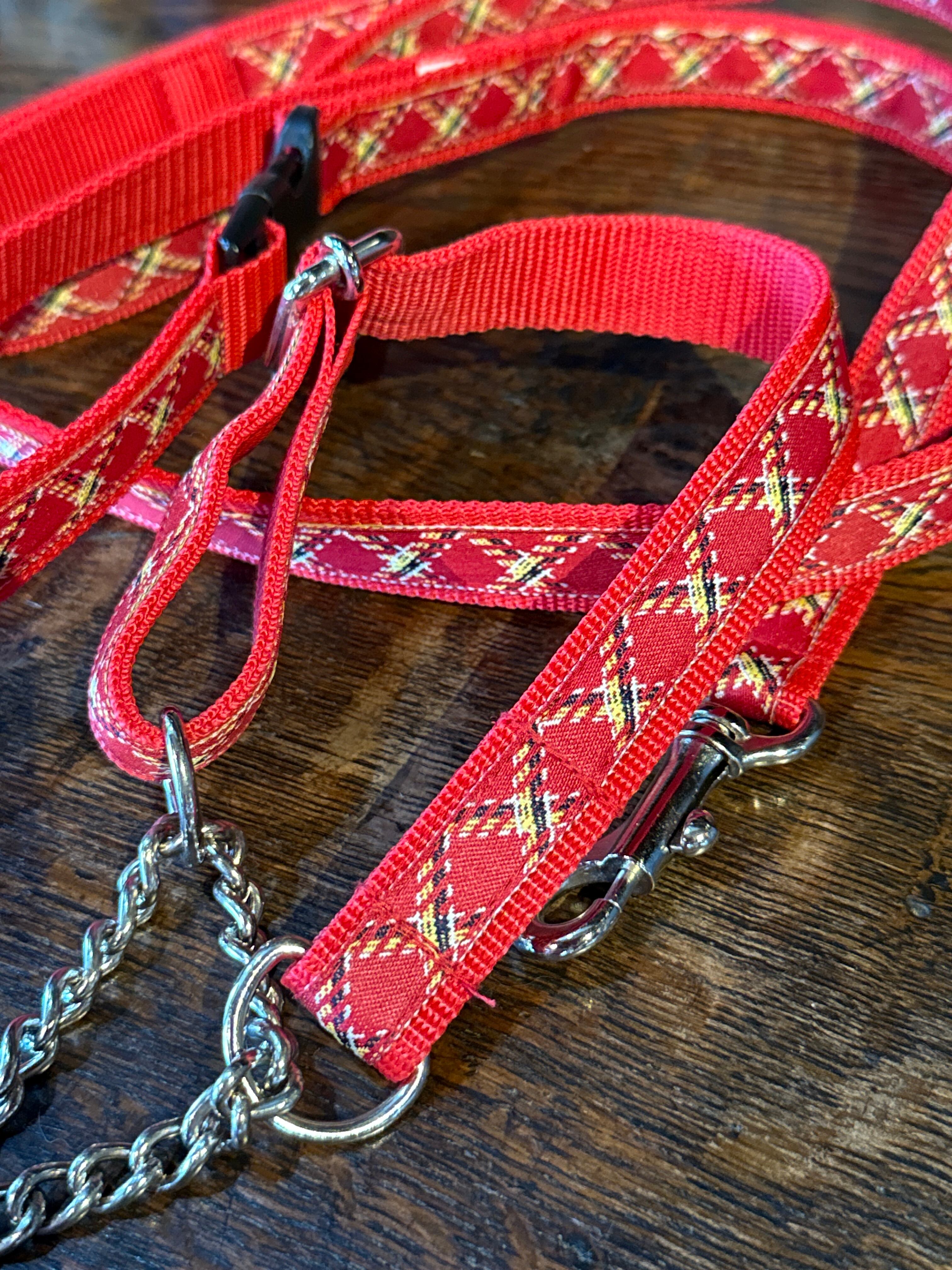 送料無料★ Mサイズ ハーフチョークカラーとリードのセット 裏テープはお好みの色で