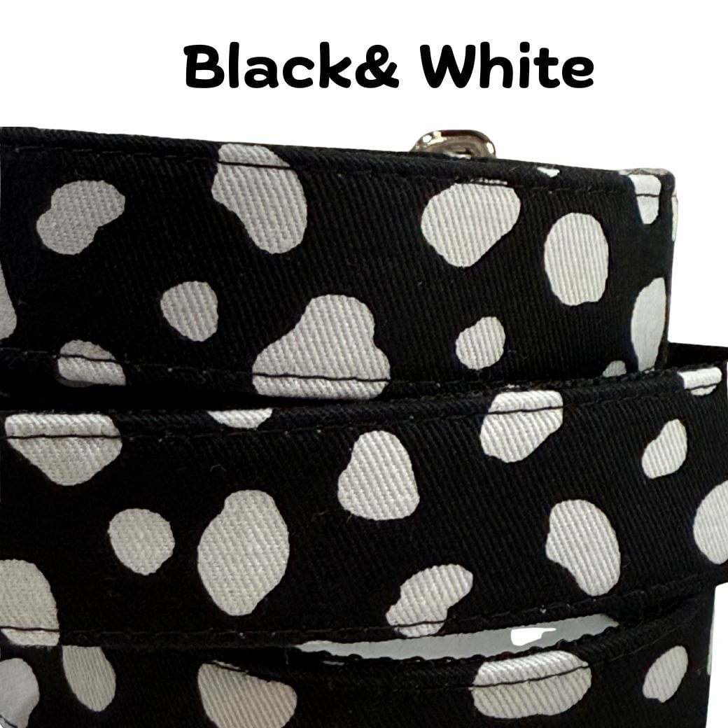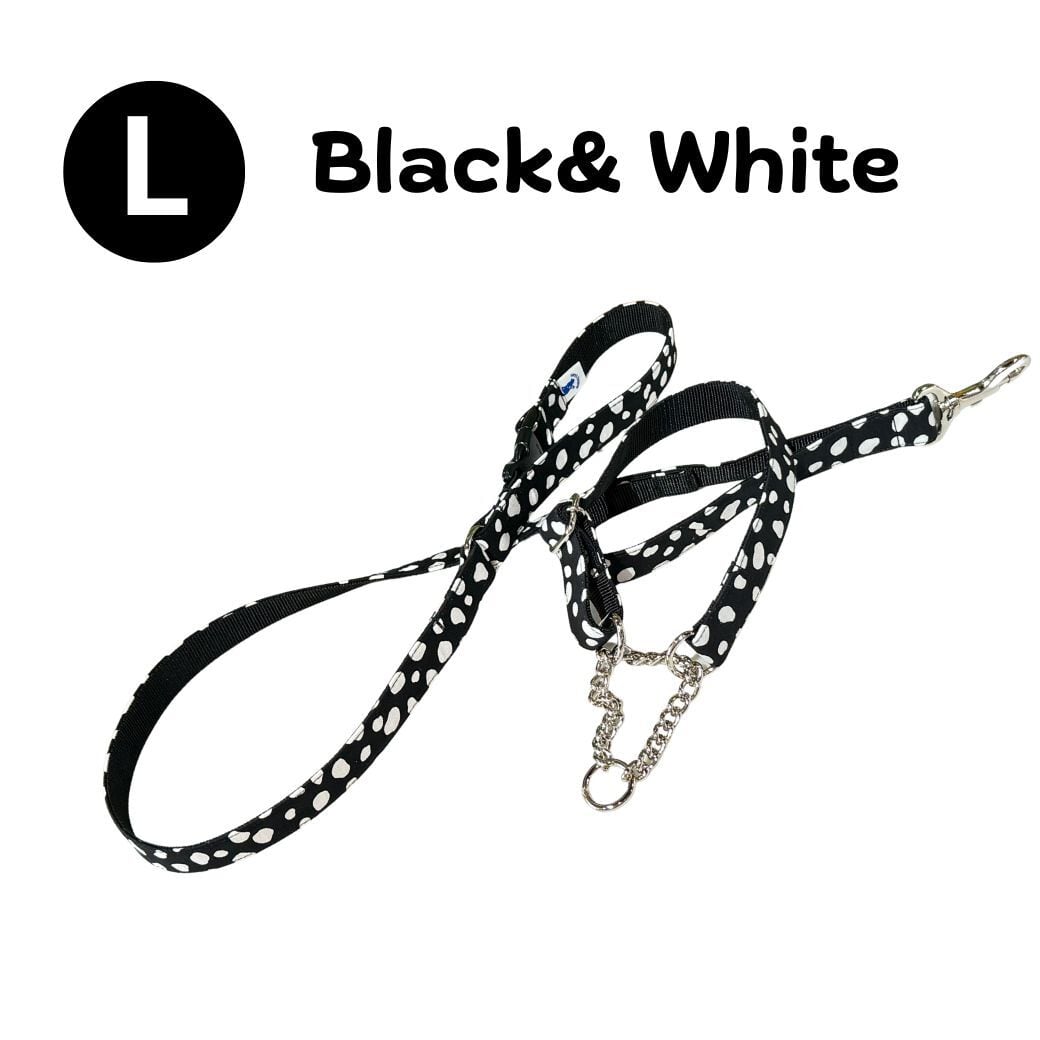 大型犬用 Lハーフチョークカラーとリード 料無料★Black &White 布 大型犬用首輪とリードのセット Lサイズ 裏テープはお好みの色で
