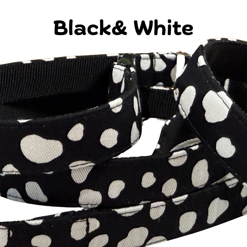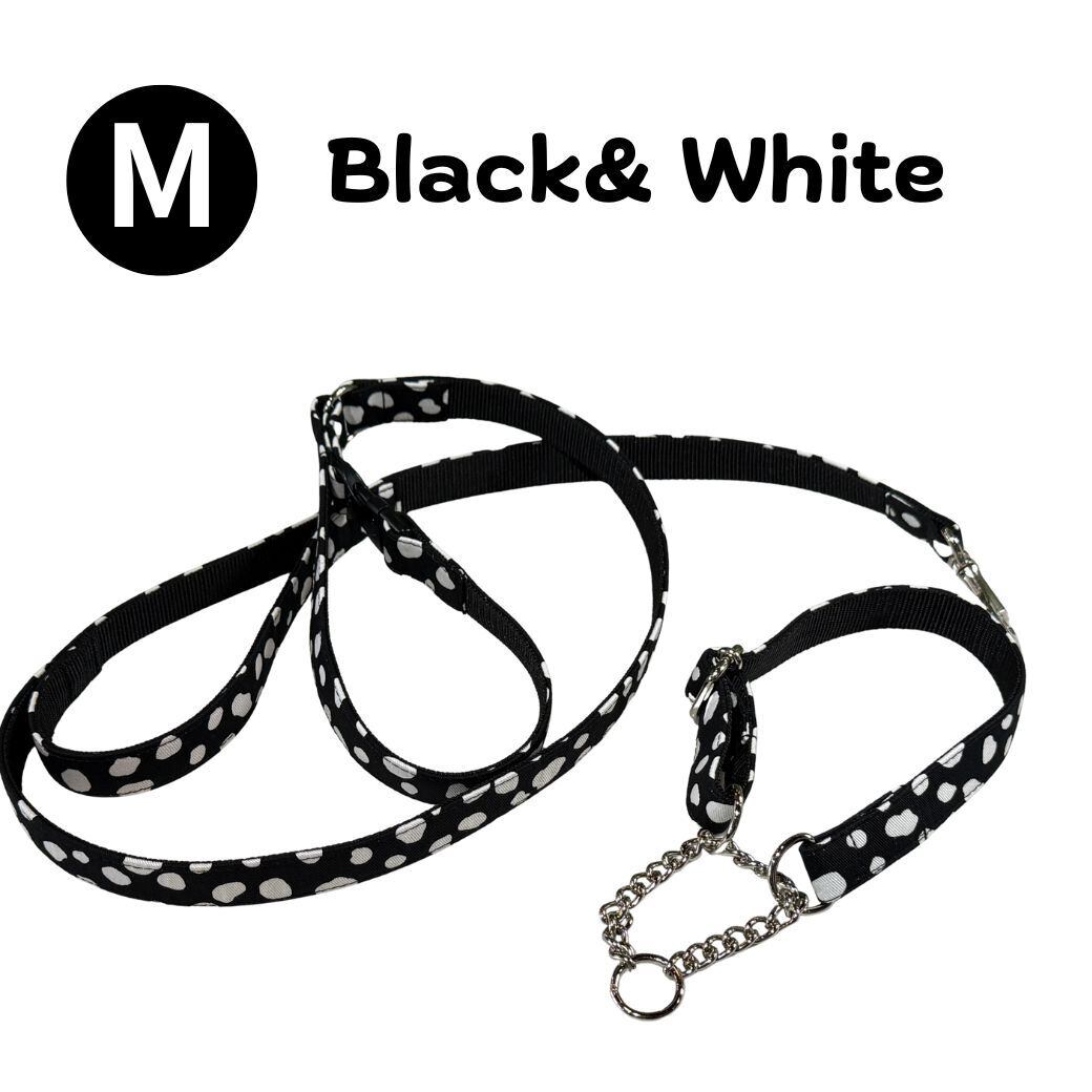 送料無料★ Mサイズ ハーフチョークカラーとリードのセット Blsck & White 裏テープはお好みの色で