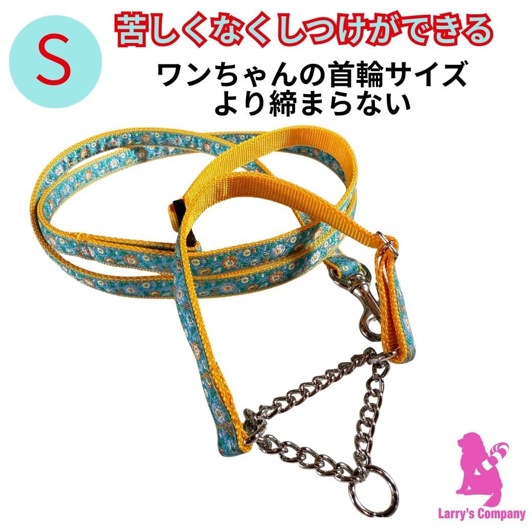 小型犬用 Sサイズ ハーフチョークカラーとリードのセット トルコブルーム 裏テープはお好みの色で