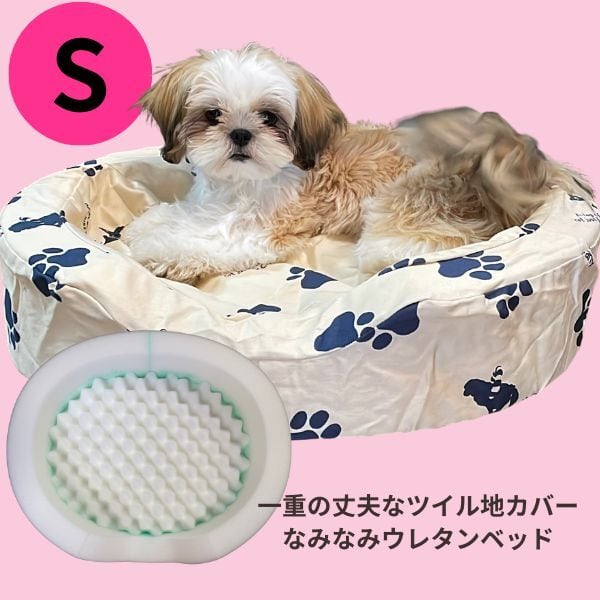 【Sサイズ】綿ツイル地カバー付き なみなみウレタンカドラー|小型犬用・オーソペディック犬ベッド|日本製|ラリーズカンパニー
