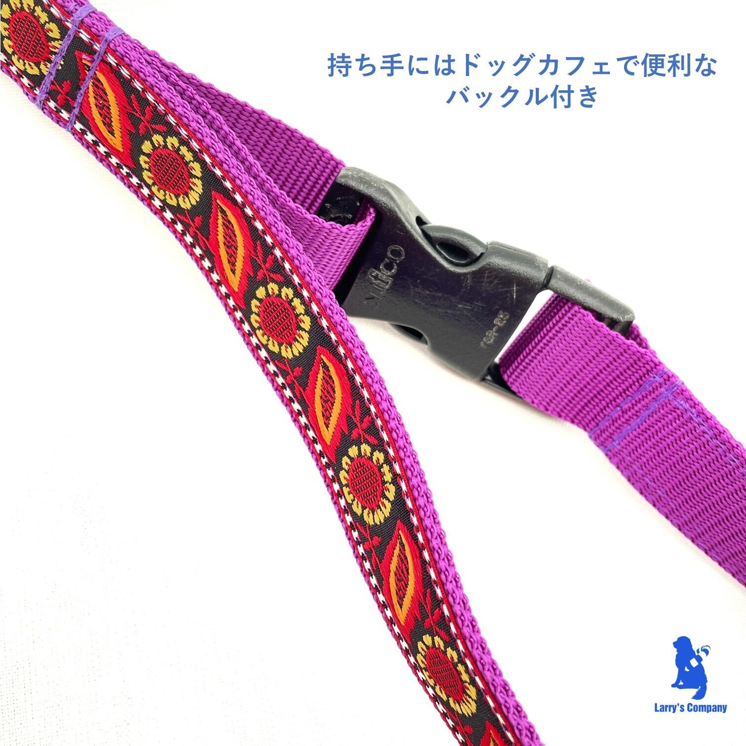 大型犬用首輪 Lサイズのハーフチョークオーダー【ひまわり】横幅2.5cm ショートリード付きリードとハーフチョークのセット