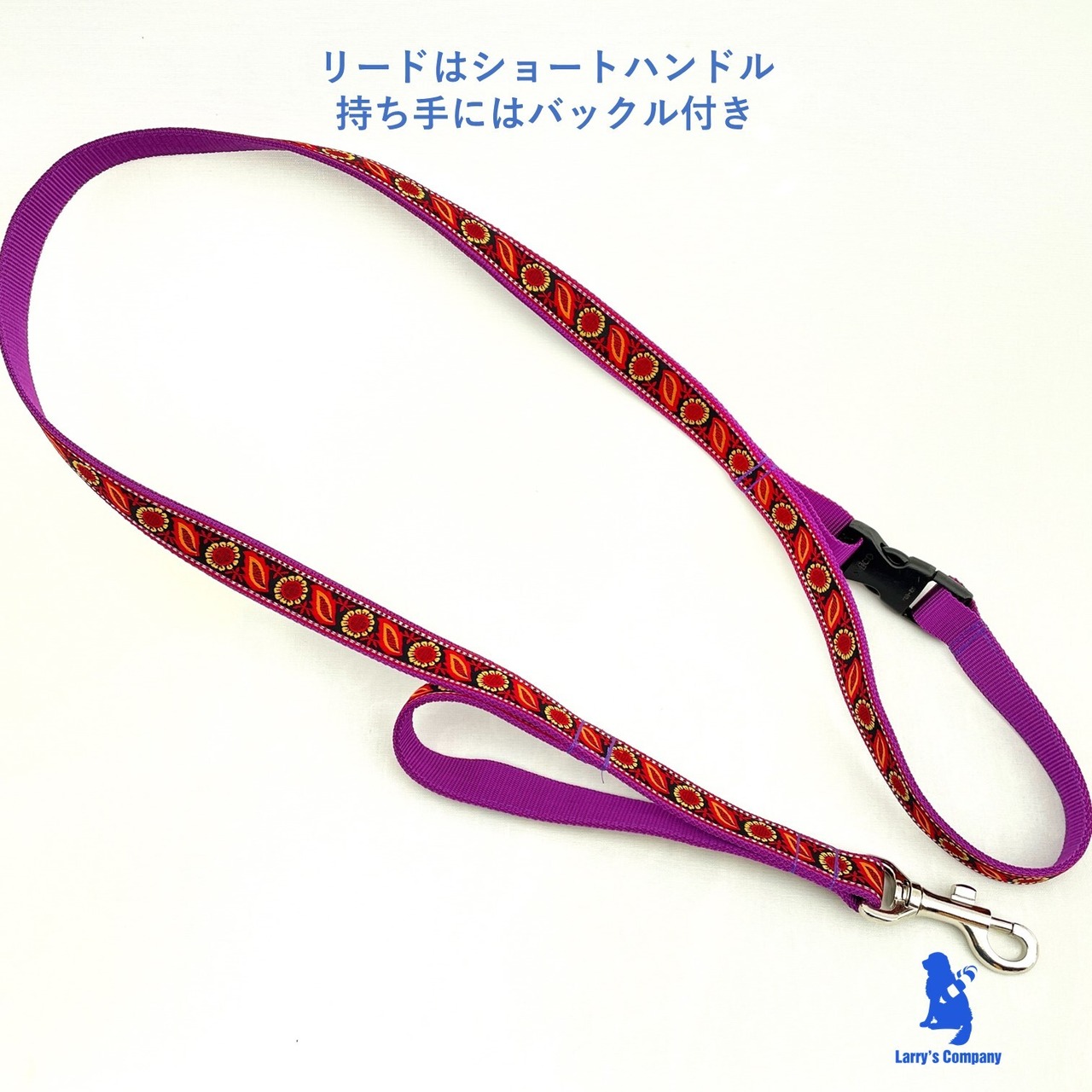 に寄せて置ける、短いハンドルのついた便利なリードはおすすめです。(+1,100円)