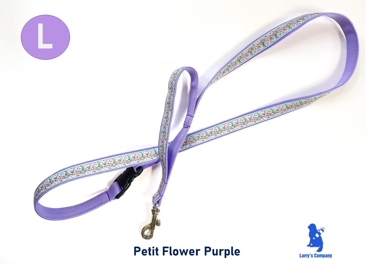 L レトリバーサイズのハーフチョークカラー 【プチフラワーブルー&ピンク】横幅2.5cm ハーフチョークオーダー 大型犬用首輪とリードのセット