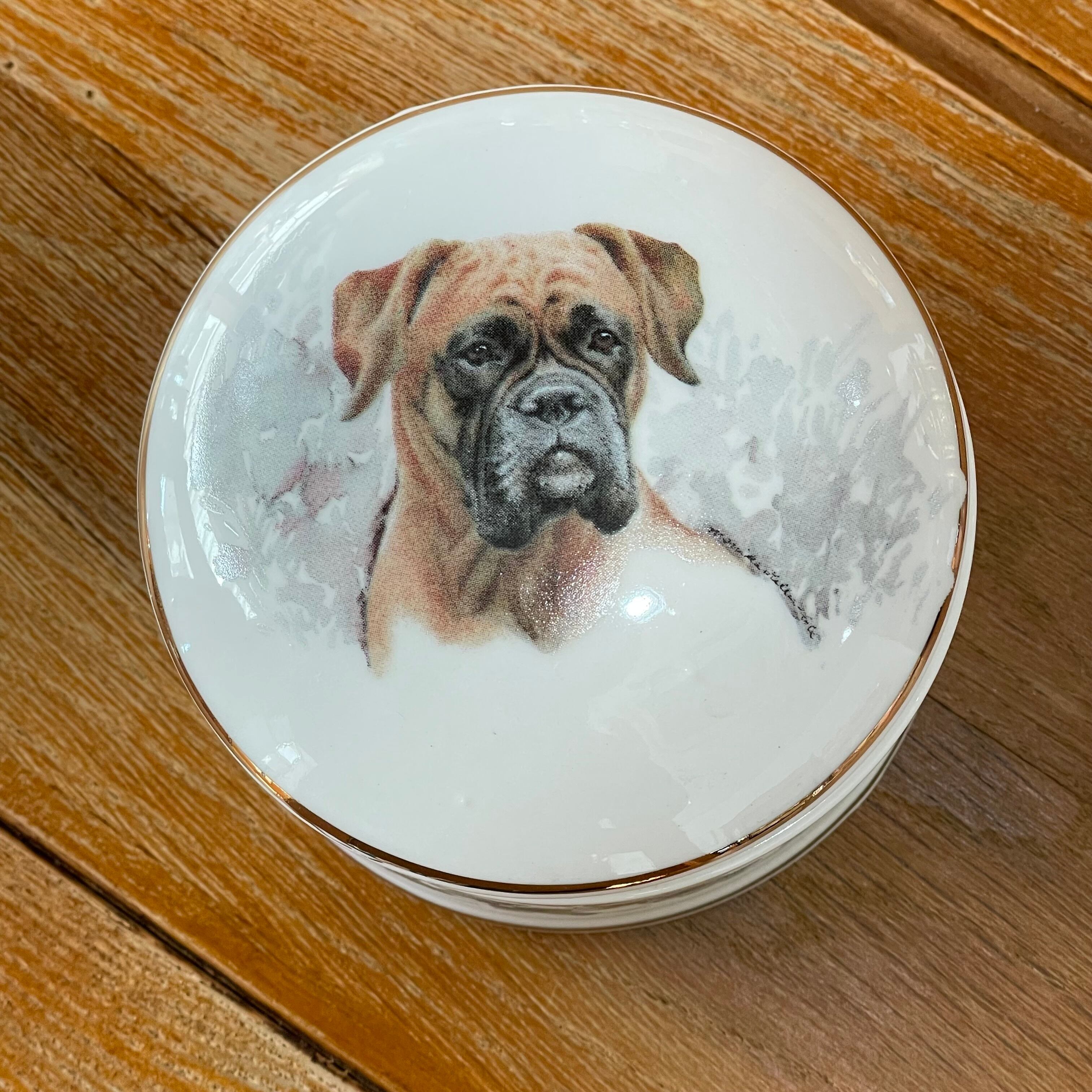 ボクサーのトリンケットボックス イギリス製ボーンチャイナ ジュエリーボックス ボクサーの小箱