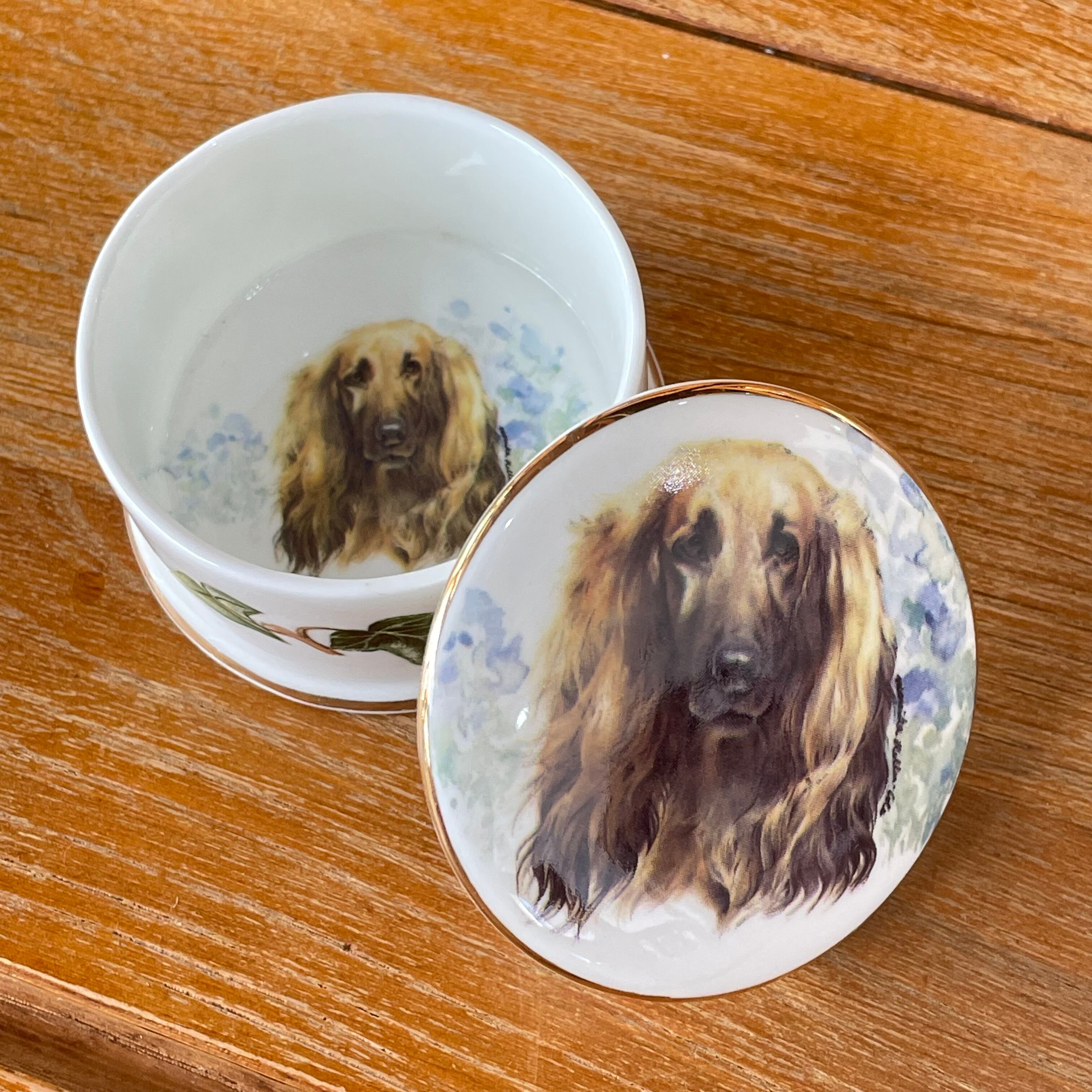 アフガンハウンドのトリンケットボックス(スモールサイズ) イギリス製 ボーンチャイナ ジュエリーボックス アフガンの小箱