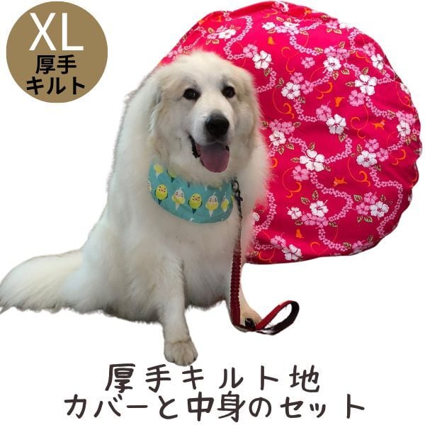ふわふわラウンドベッドの厚手キルティングカバーと中身のセットです。